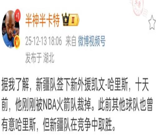 就在新疆男籃揭幕戰(zhàn)即將開始的時候,有媒體人報道新疆男籃已經(jīng)和剛被火箭隊裁掉的后衛(wèi)哈里斯完成了簽約。