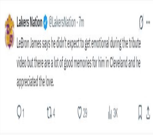 在洗完澡后勒布朗接受了采訪,他談到騎士主場為他播放致敬視頻:在觀看致敬視頻時,我自己也沒想到自己會如此動情,但我在克利夫蘭有很多美好的回憶,我很感激騎士對他的這份關(guān)愛。