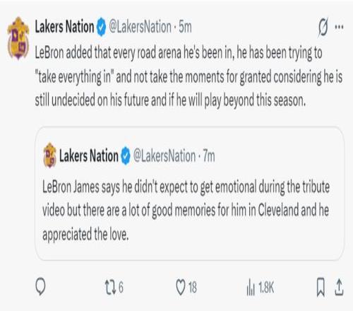詹皇感激騎士致敬之愛:不確定明年還會征戰(zhàn)!鐵林分析大概率退役